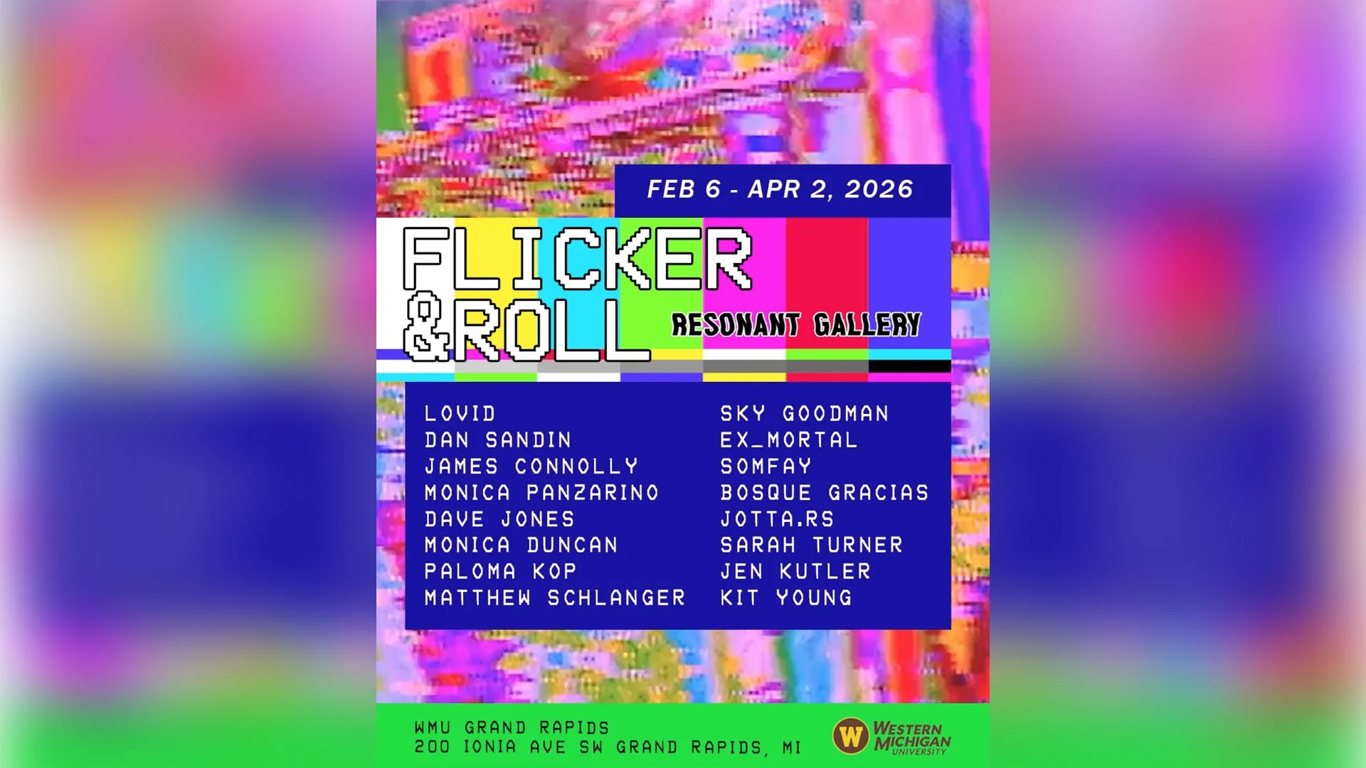 /Thrilled that my video in collaboration with James Connolly, Eight-Minute Romp Through SAIC's Sandin Image Processor is included in the group exhibition, Flicker & Roll at Resonant Gallery in Grand Rapids, Michigan through April 2nd!